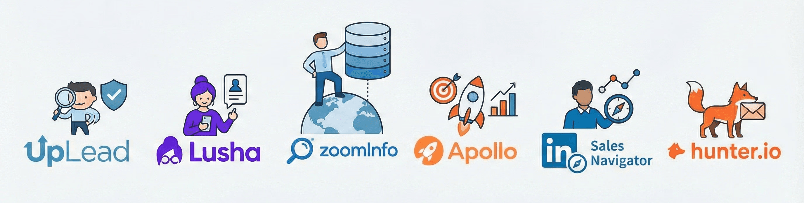 2026 Guide to ZoomInfo, Apollo, UpLead, Lusha, Sales Navigator & Hunter.io